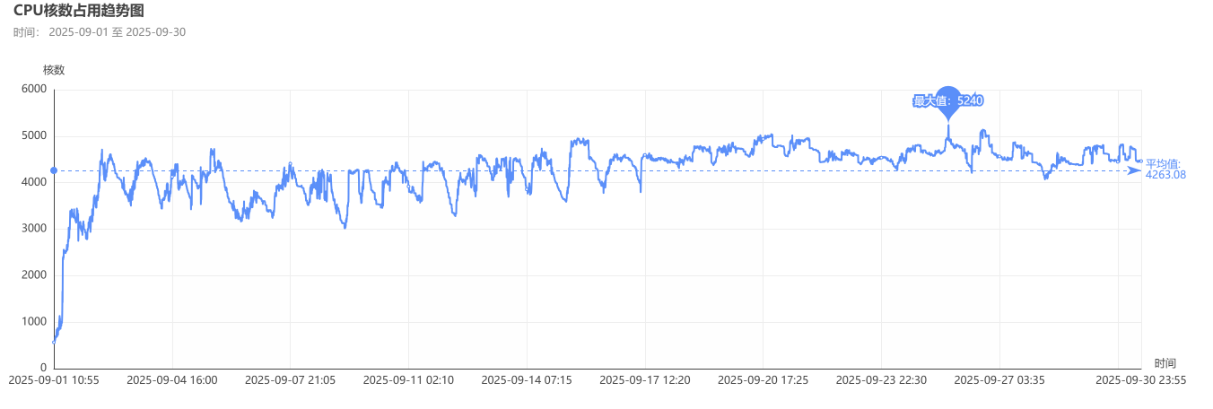 CPU核数占用趋势统计(2025年9月)