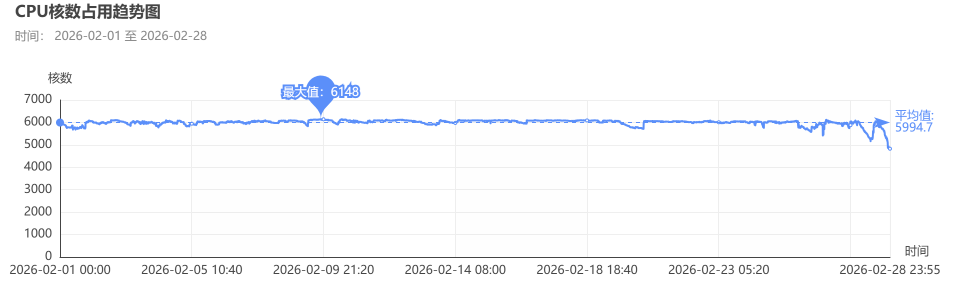 CPU核数占用趋势统计(2026年2月)